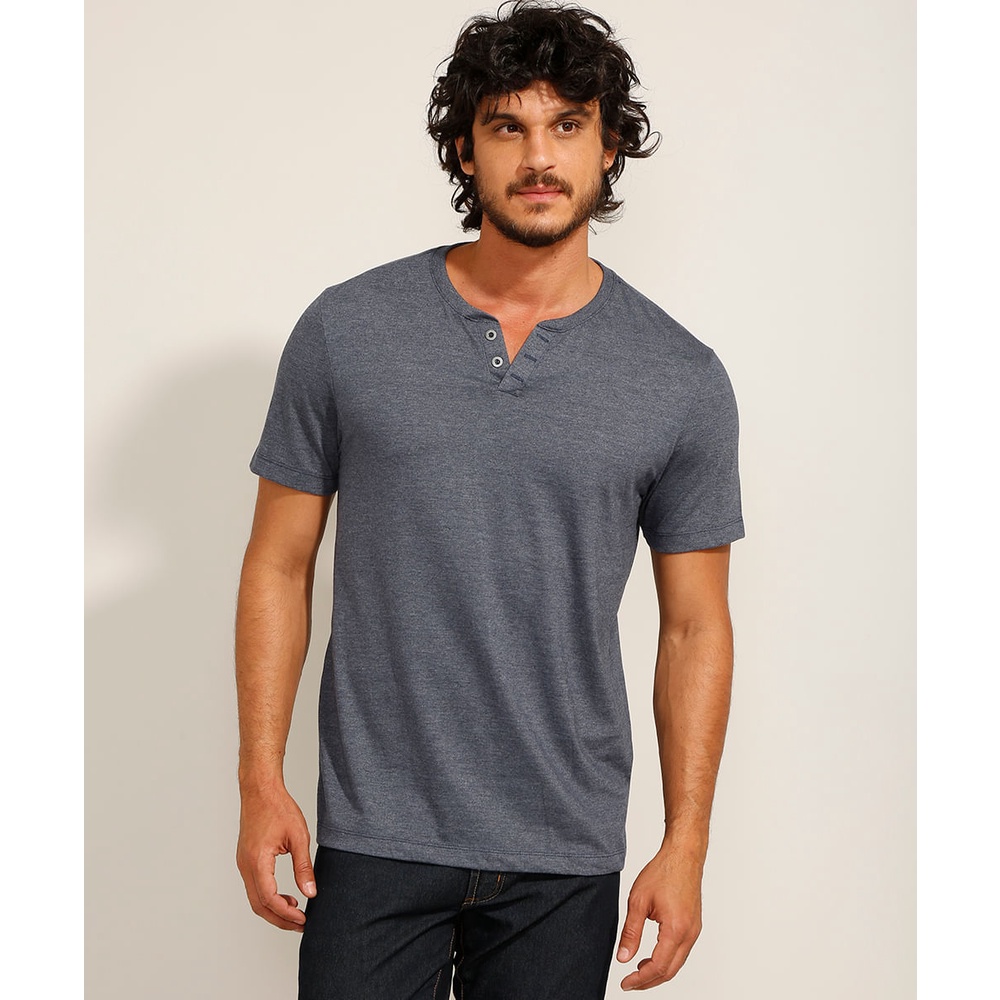 Camiseta Masculina Manga Curta Básica com Elastano Gola Careca Azul Marinho