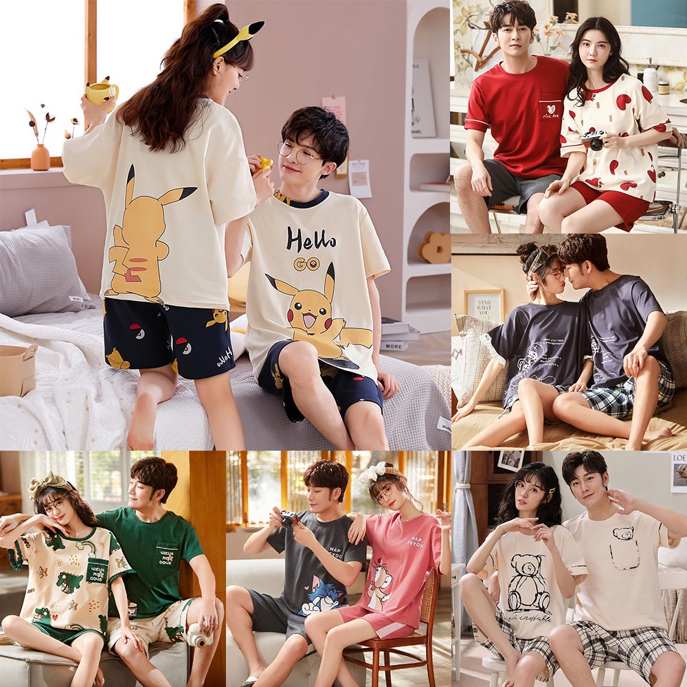 Pijama De Casal De Verão Manga Curta Para Homens Algodão De Tamanho Grande Mulheres