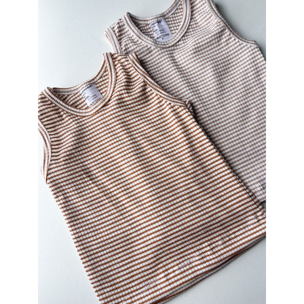 Regata listrada de bebê uniseex malha canelada. fabricação própria