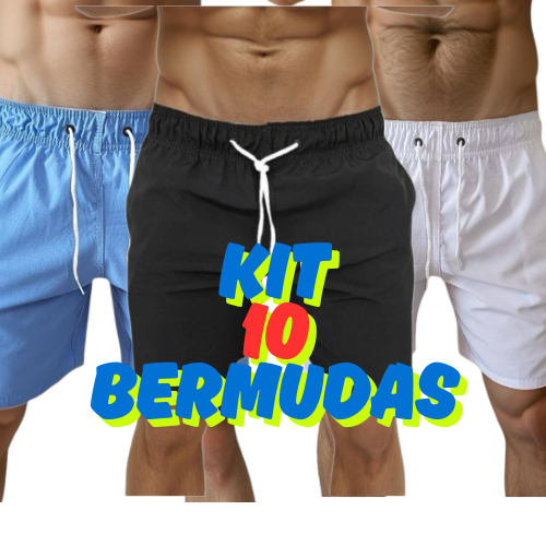 Kit 10 Short masculino praia academia bermuda treino azul preto branco tactel elastano