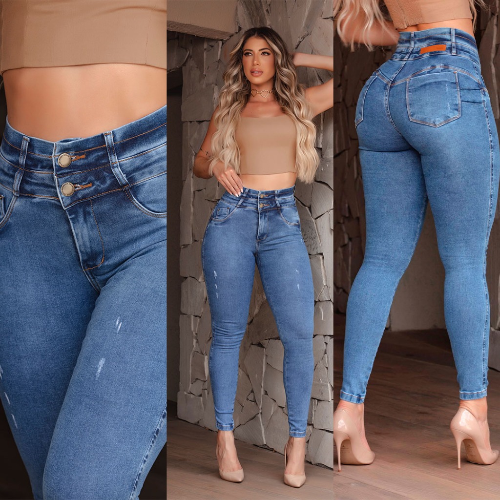 Calça Jeans Feminina Tecido Leve Com Elástico E Cordão No Cós Cintura Alta