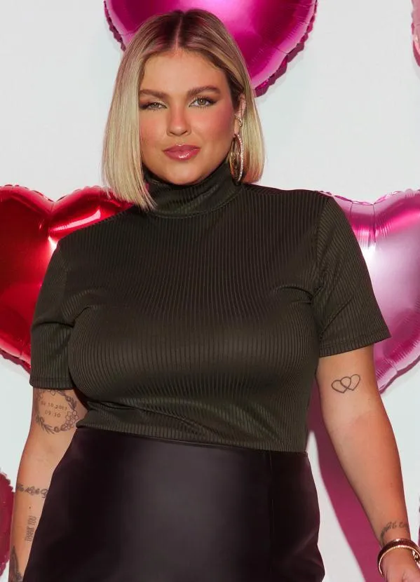 Lunender - Blusa Manga Longa Canelada com Gola Alta Verde