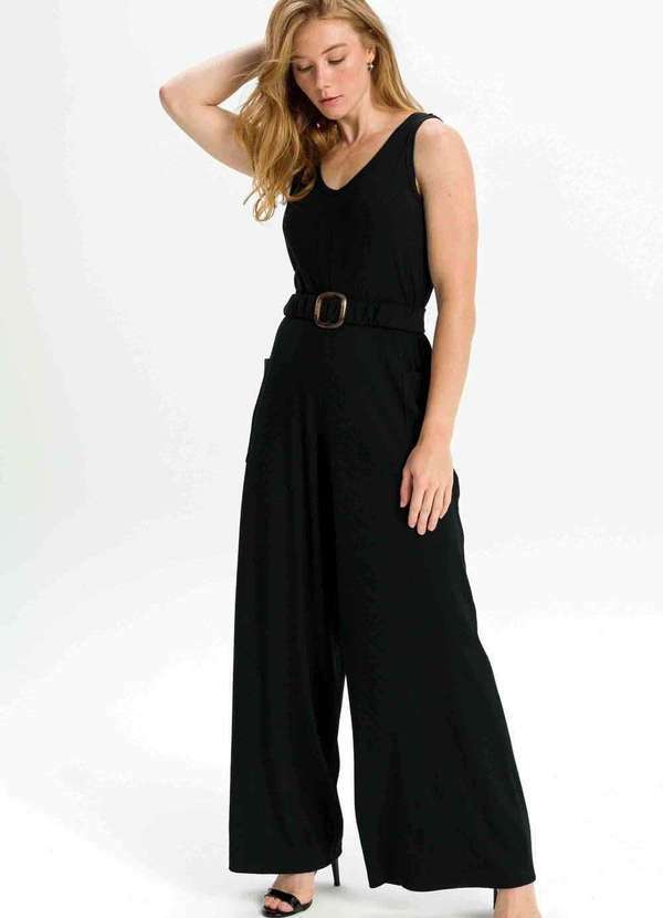 Macacão Alcinha Pantalona Malha Preto Salvatore