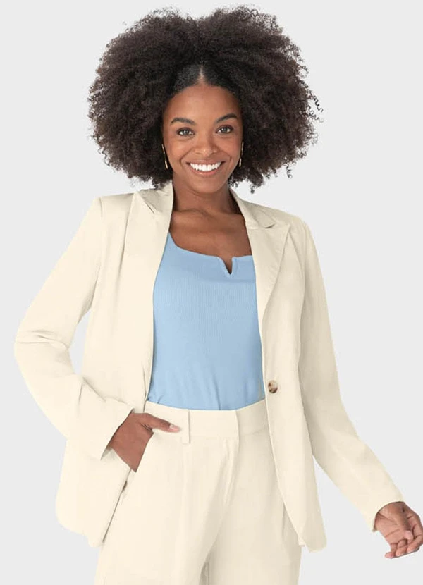 Malwee - Blazer Off White Alfaiataria em Viscose Sarjada