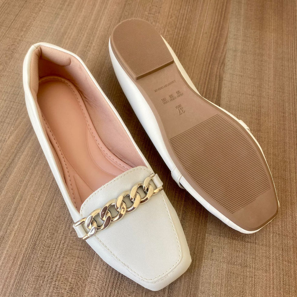 Sapatilha Mocassim Bico Quadrado Confort Casual Corrente Napa Off White
