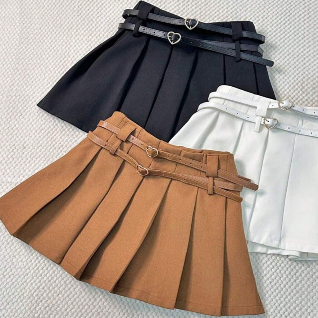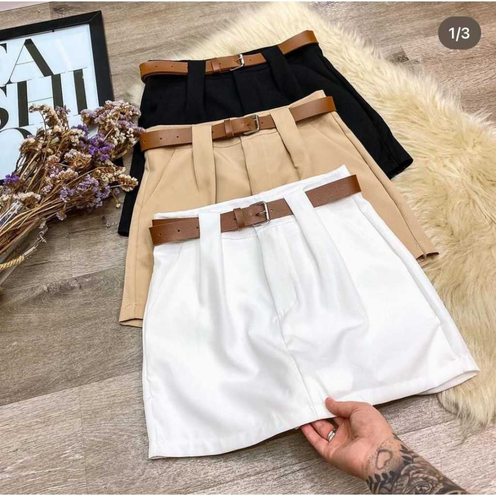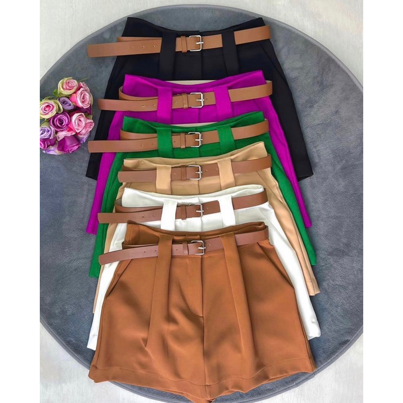 Short Saia Tendência Alfaiataria Com Cinto De Couro