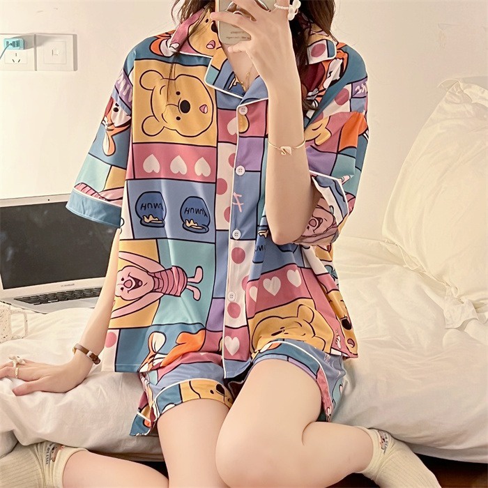 (Tamanhos Grandes) Pijama De Algodão Puro Feminino De Verão Manga Curta Slack Baju Tidur Floral Confortável