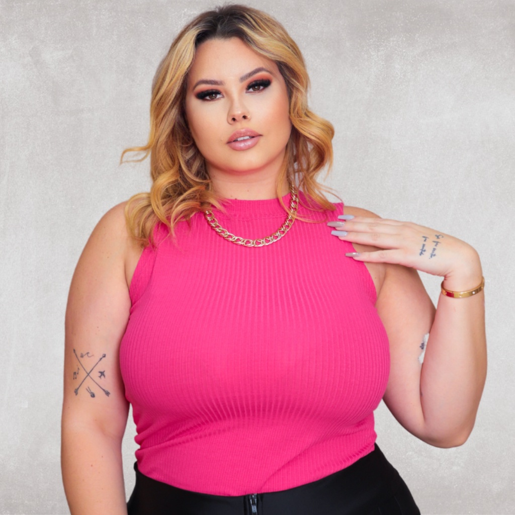 Blusa Regata alça grossa em malha batinha com fivela na alça larga plus size