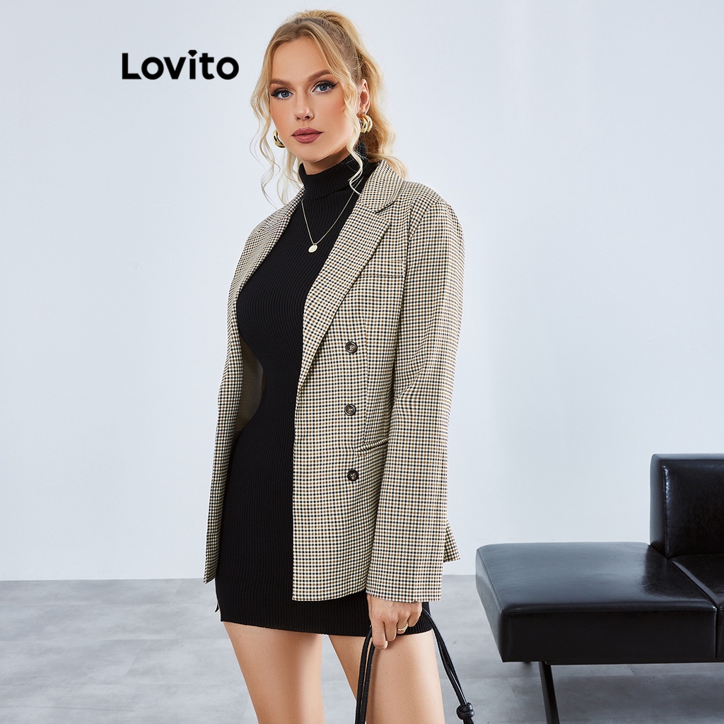 Lovito Elegante Blazer de Botões Duplos com Bolsos para Mulheres LBE01007 (Marrom)