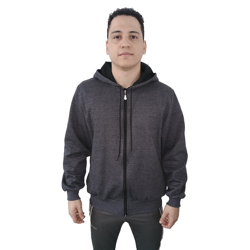 Moletom Masculino com Ziper Blusa De Frio Casaco Com Capuz Bolso Agasalho Algodão Cinza mescla escuro