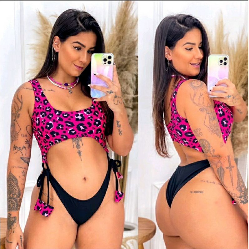 Body Maiô Cavado Amarração Lateral Argola Biquíni Asa Delta Com Bojo Fio Dental Gringo Anita Anitta