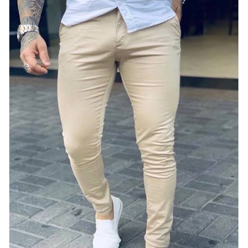 Calça De Sarja Masculina Alfaiataria Casual Slim Fit Bege
