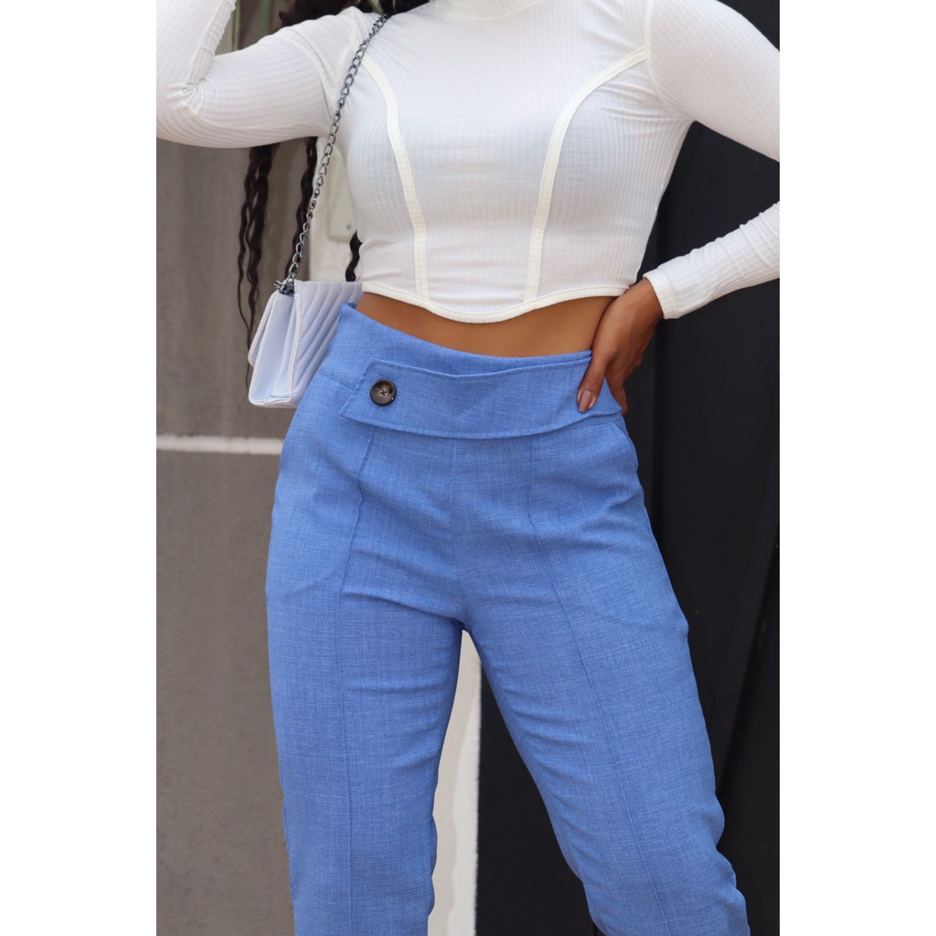 Calça Social Feminina Skinny Alfaiataria Linho Cintura Alta