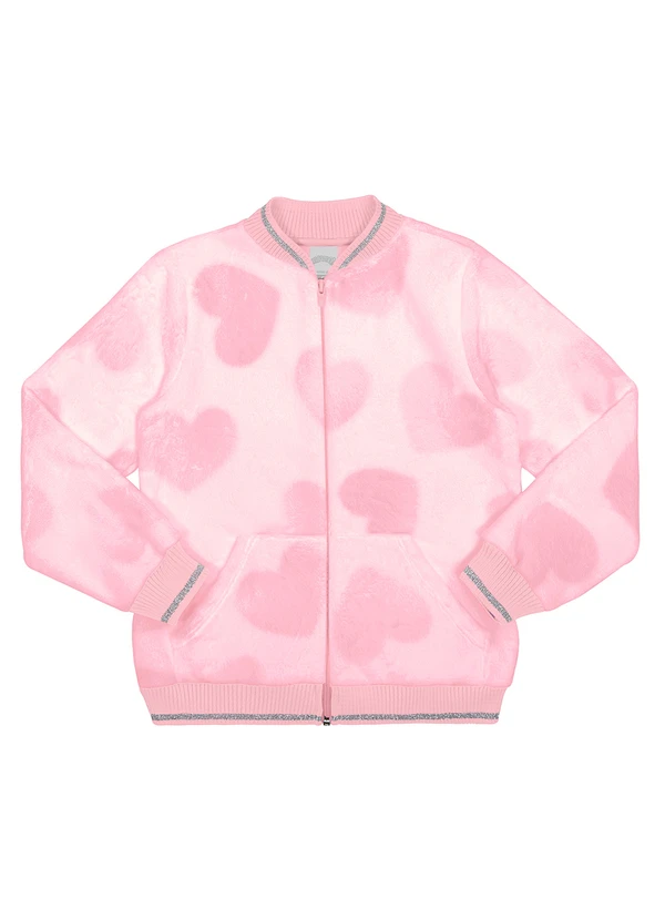 Alakazoo - Jaqueta Bomber Infantil Menina em Pelo Corações Off White