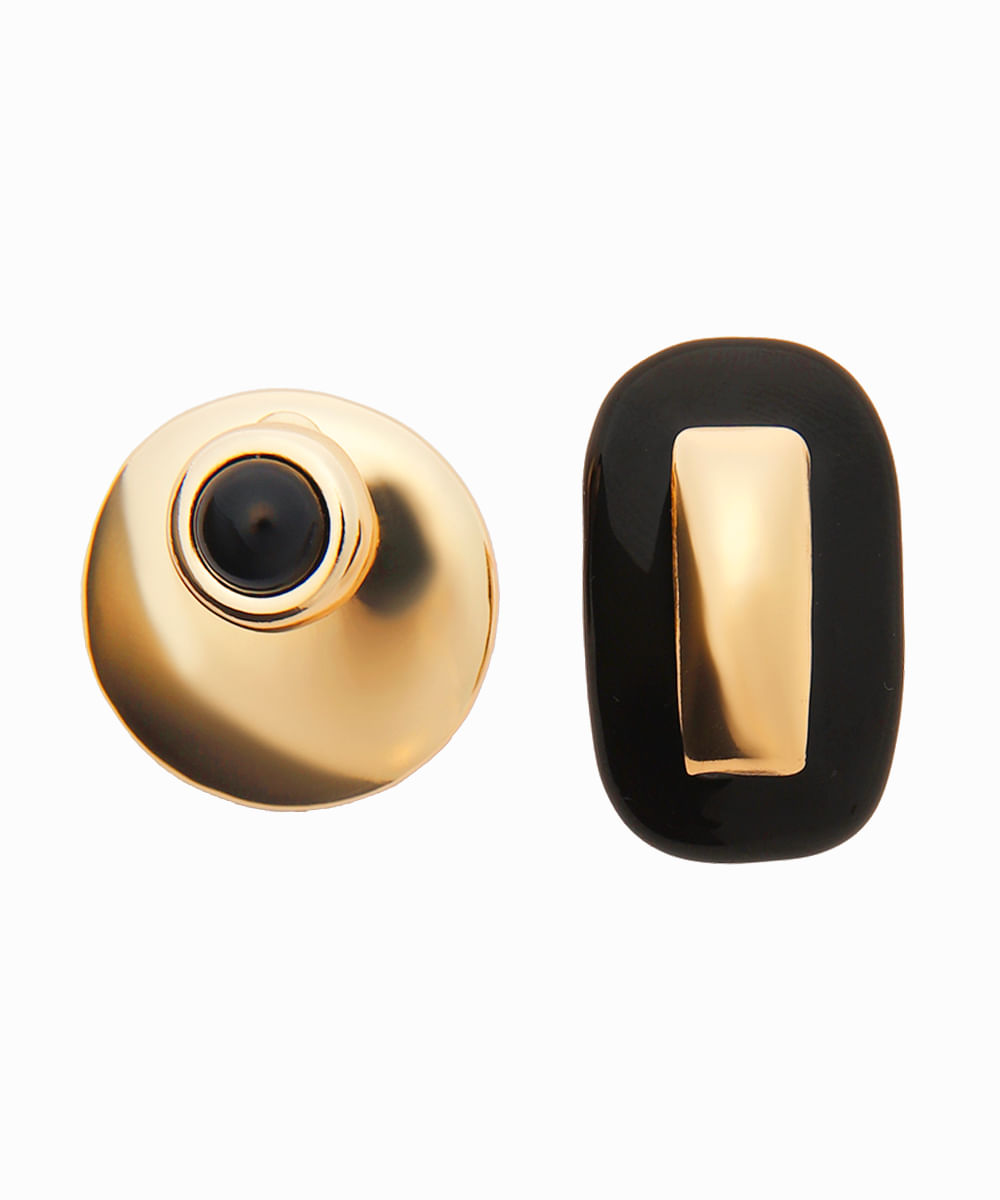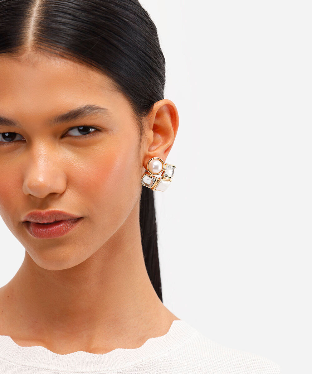 brinco geométrico com pérolas mindset dourado