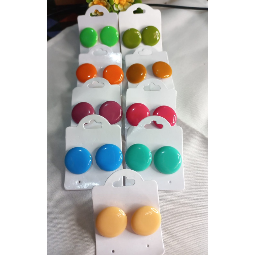 Brinco botão colorido tendência resina resinado biju barata lindo cores redondo