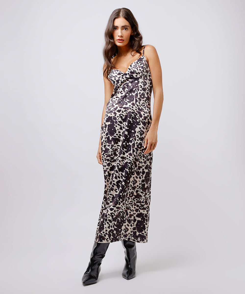 Vestido Slip Dress Midi Acetinado Decote Degagê