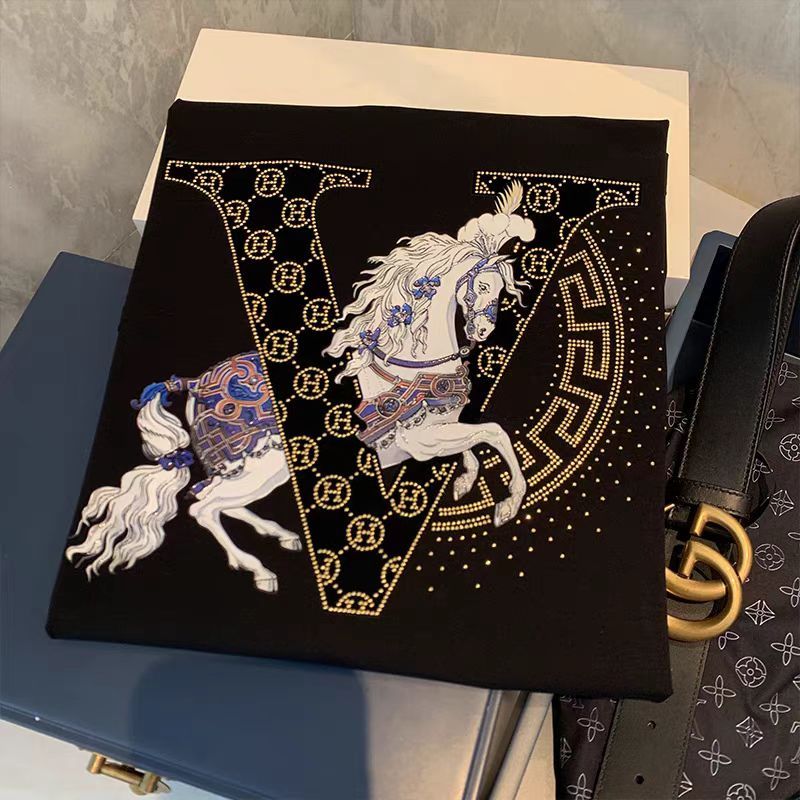 Camiseta masculina Oversized Camiseta estampada Cavalo de guerra100% algodão Elegante e simples Unissex Ombros e gola