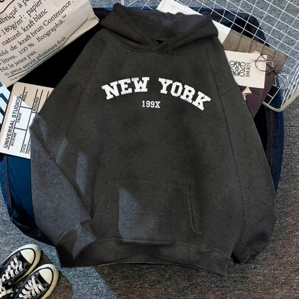 Moletom Cangurú Unissex Blusa de Frio Casaco Feminino Masculino Flanelado Algodão New York 199X (FRENTE)