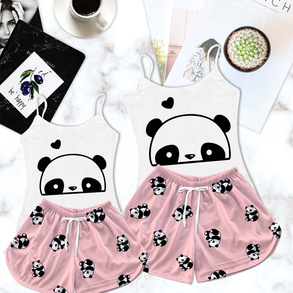 Conjunto Feminino Pijama Baby Doll Tal Mãe Tal Filha Panda Rosa