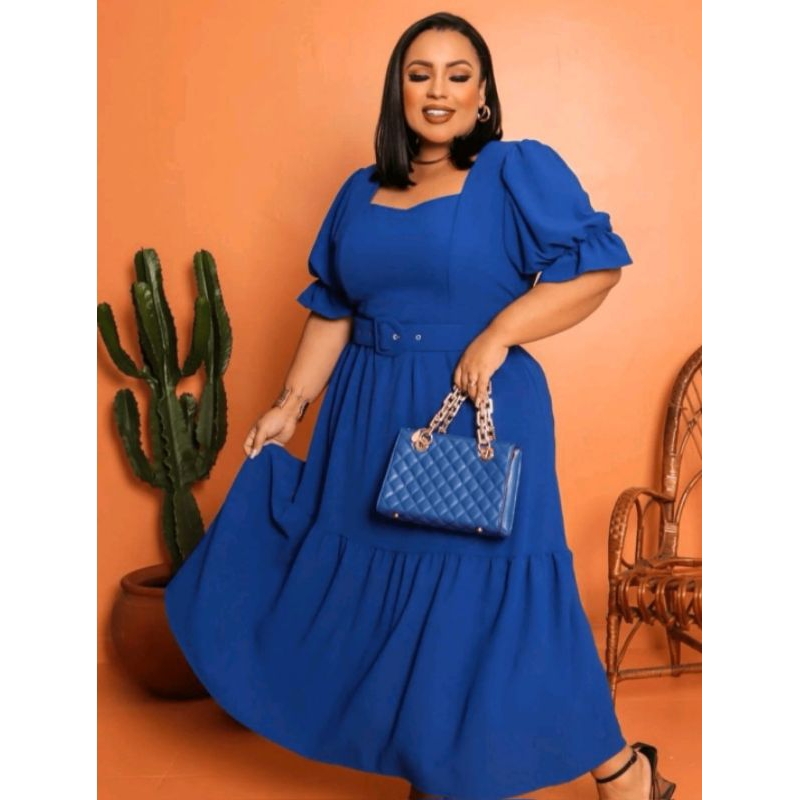 Vestido Feminino Tamanho Grande Midi Gode Com Cinto Moda Evangélica Plus Size Festa Curve Tendencia