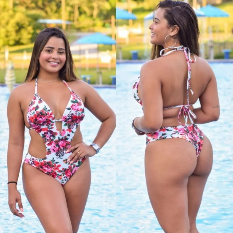 Body Maiô Feminino Alça Estampado e Liso Com Bojo Calcinha Fio Duplo