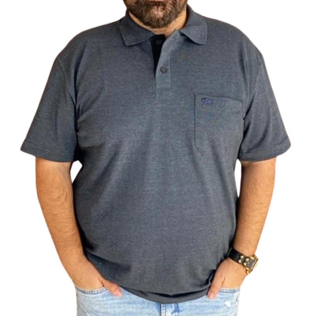 Polo Masculina Grafite Malha Mescla Com Bolso Plus Size G1 Ao G5