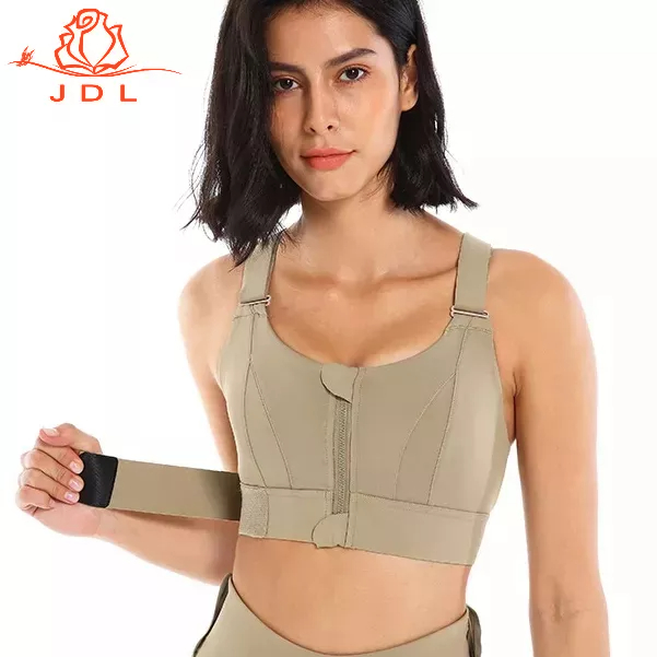JDL. Mulheres Sutiãs Dos Esportes Calças Justas Top Colheita Yoga Colete Com Zíper Frontal Plus Size Alça Ajustável À Prova De Choque Ginásio De Fitness Atlético Sutiã