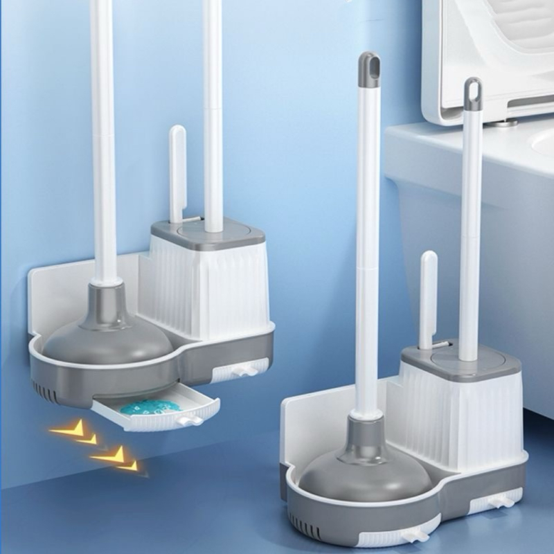 Escova Sanitária Silicone Para Limpar Vaso Privada Com Suporte Preto Cinza Branco (CONJUNTO) 1040