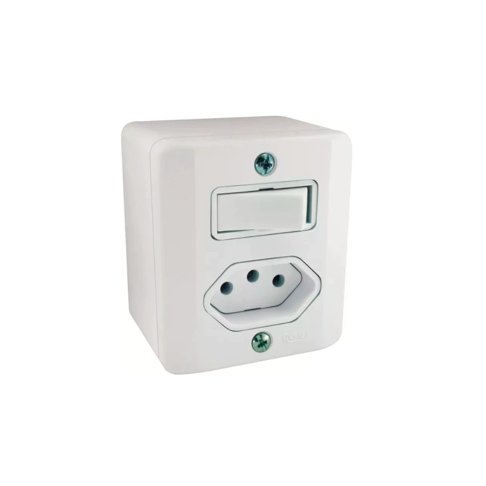 Conjunto 1 Interruptor Simples + 1 Tomada Sobrepor Com Caixa 2P+T 250V/10A Branco 4 X 2 63200 Ilumi