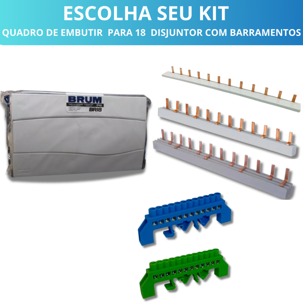 KIT QUADRO DE EMBUTIR PARA 18 DISJUNTORES BRUM +BARRAMENTO NEUTRO E TERRA 12 FUROS,BARRAMENTO PENTE