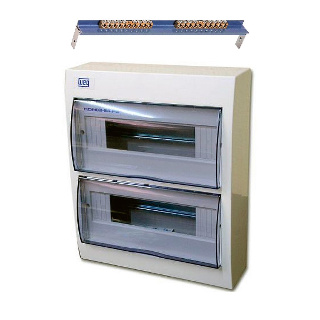 Quadro de Distribuição de Sobrepor para 24 Disjuntores + Barramento Terra e Neutro Weg