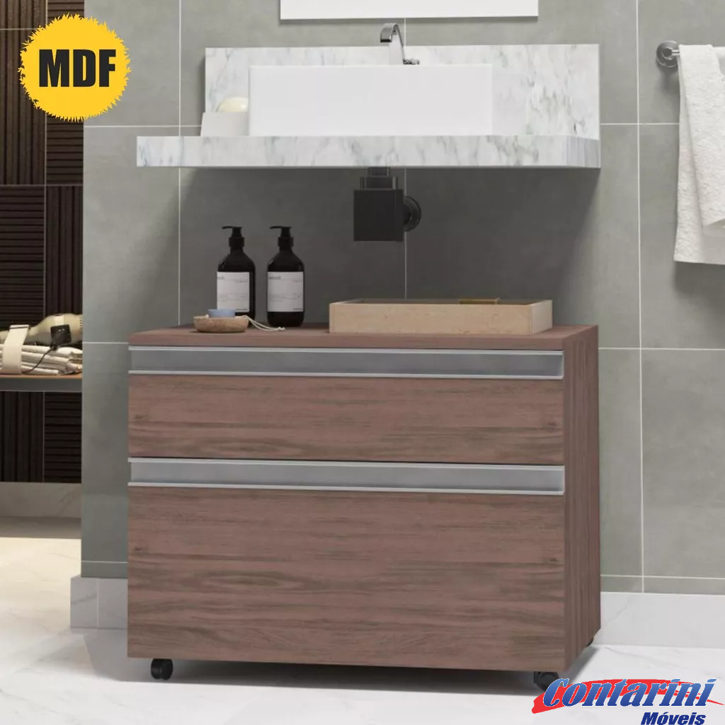 Toucador Safira MDF 80cm armário gabinete banheiro módulo inferior rodízio com rodinhas