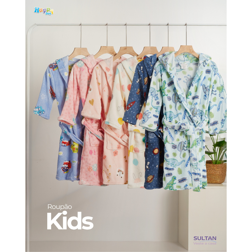 Roupão Banho Com Capuz Infantil Microfibra Estampado Para Crianças 3 À 11 Anos Kids Sultan