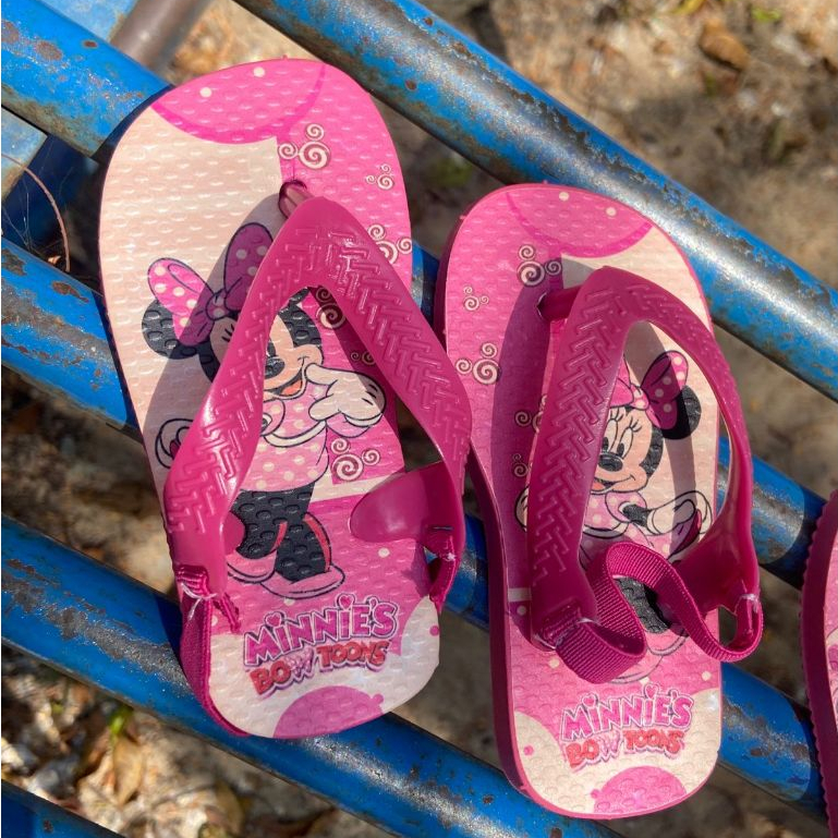 Chinelo Havaianas Baby Minnie Disney Desenho Classics Menina Rosa Praia Lilas Pink Laço Criança Infantil Bebe com Elástico Original 2023