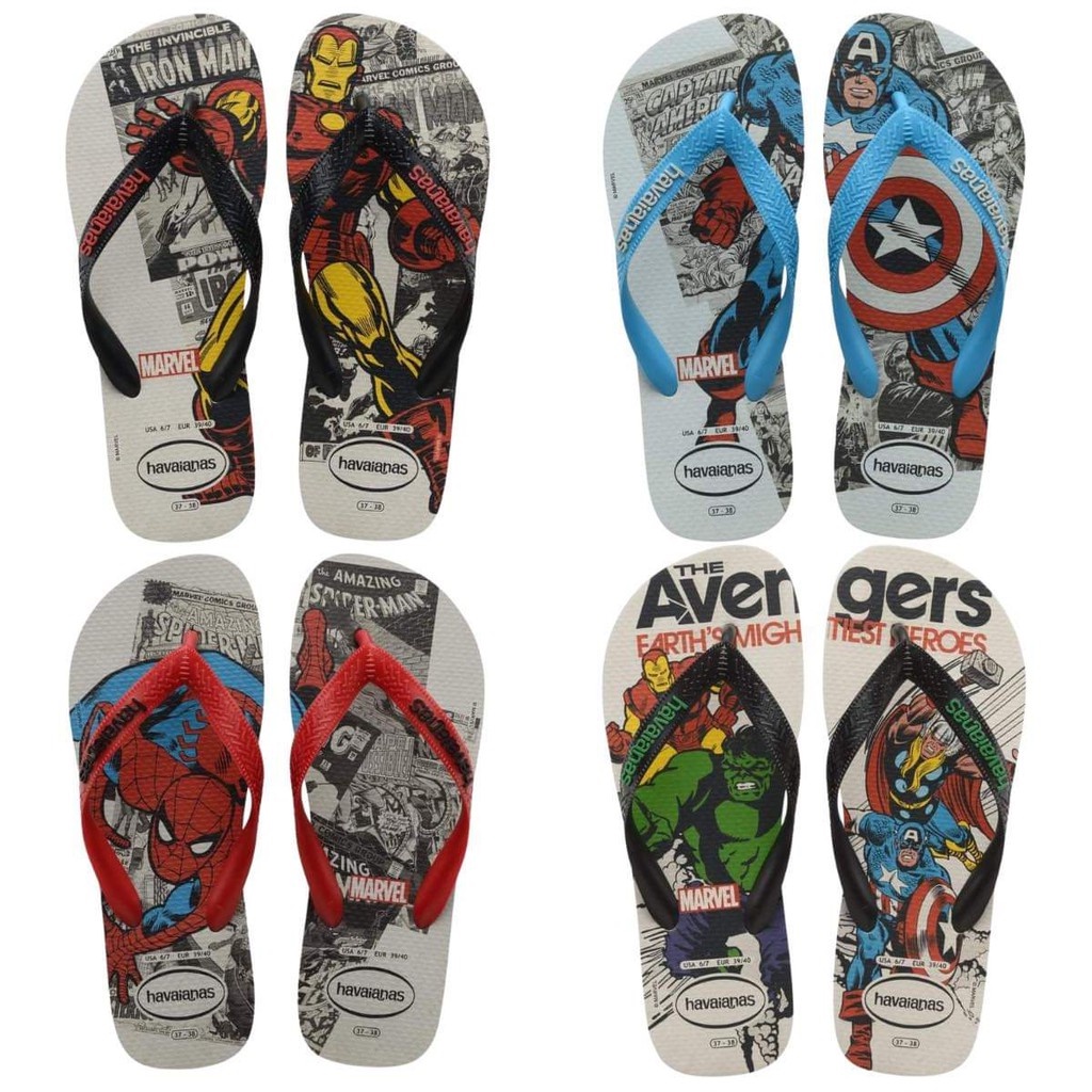 Chinelo Havaianas Marvel Classic capitão América homem de ferro homem aranha Hulk Thor