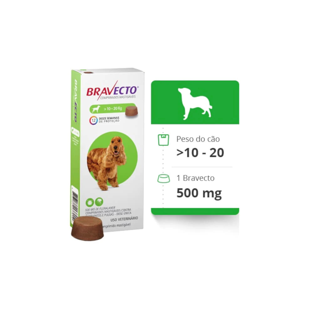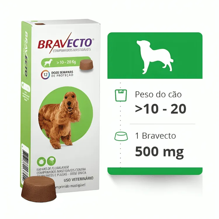 Bravecto Antipulgas e Carrapatos para Cães de 10 a 20 kg - 1 Comprimido 500mg - MSD