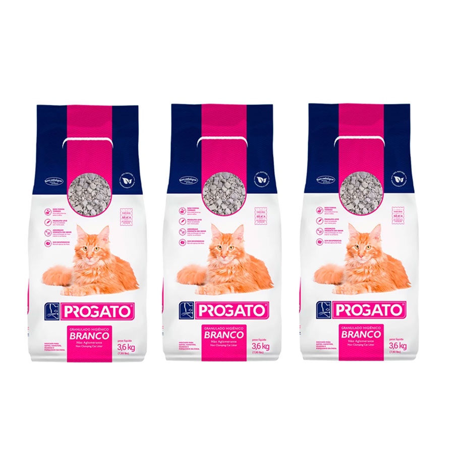 Kit 3 Areia P/ Gato Granulado Higiênico Progato Branco 3,6kg
