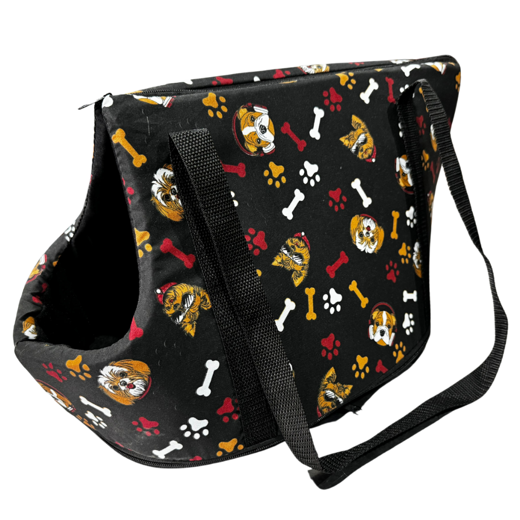 BOLSA DE TRANSPORTE PET P/CACHORROS E GATOS VIAGEM E PASSEIO C/ESTOFADO E TECIDO ESTAMPA PRETA E VERMELHA TAMANHO P