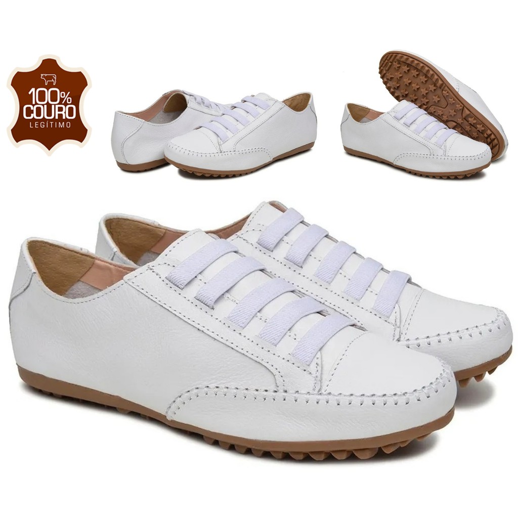 Tênis Feminino Sapatênis Mocassim Mocatênis Couro Legítimo Branco - N° 33 Até 42
