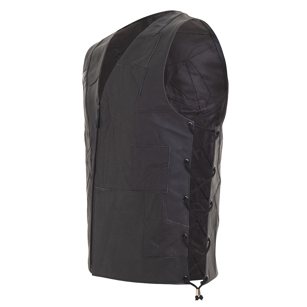 Colete Em Couro Legitimo Bovino Retalhado Com Fechamento Em Ziper Preto Motoclube