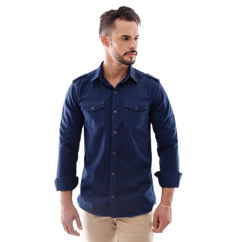 Camisa Amil Slim Paris Manga Longa Estilo Militar 2 Bolsos