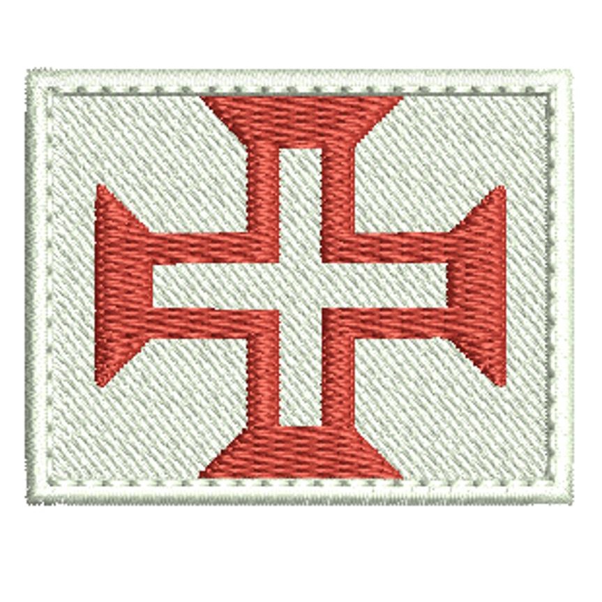 Patch Bordado 8,5x5 cm Bandeira da Terra de Santa Cruz com carrapicho, para costurar ou termocolante bandeira ordem deCristo