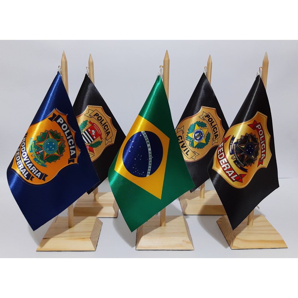Bandeira De Mesa Personalizada Super Luxo com Base e Mastro em Madeira