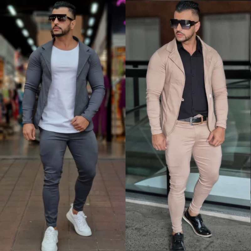 Conjunto Blazer E Calça Alfaiataria Preto Azul Bebê Royal Caramelo Jeans Masculino Slim 2 peças Calça e Blazer Esporte Fino