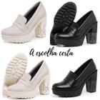 Mocassim Salto Off White Sapato Feminino de Salto Baixo Quadrado Elegante e Atemporal