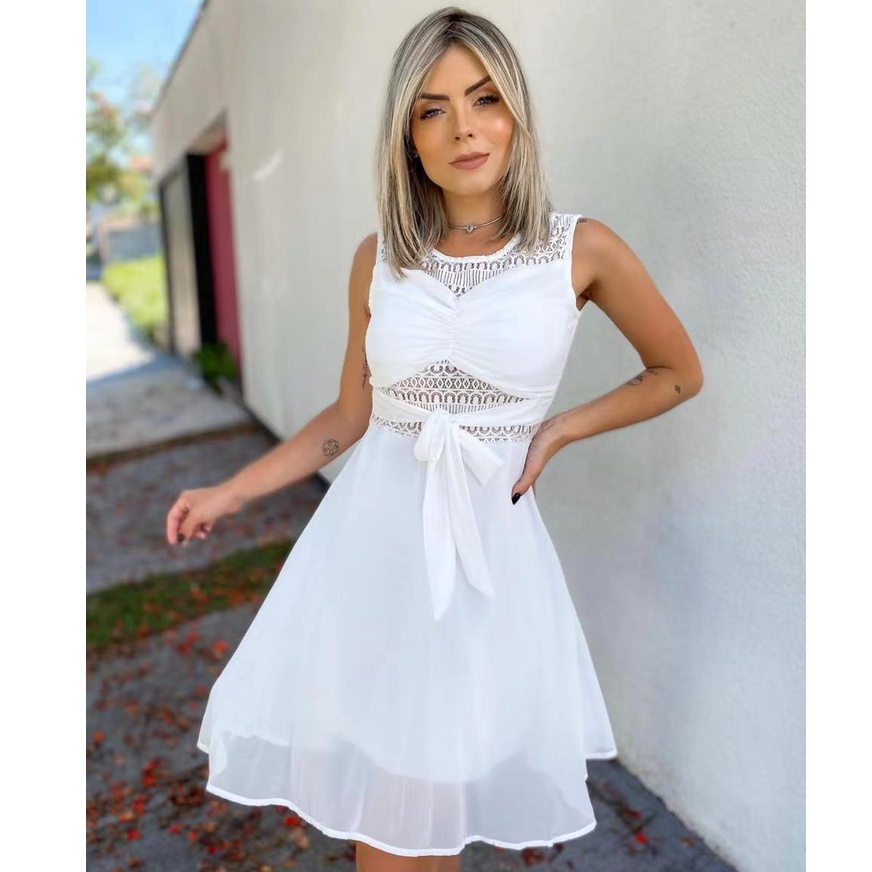 Vestido Moda Feminina Evangelica Social Com Renda Midi Rodado Amarração#MG8001