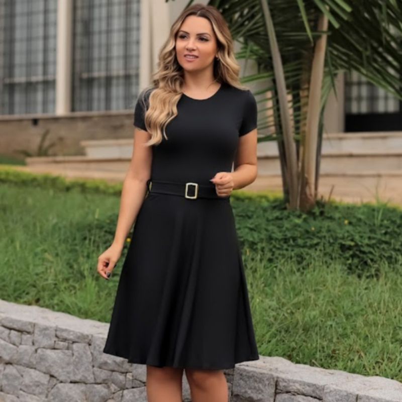 Vestido Moda Evangélica Midi Rodado Com Cinto Oferta