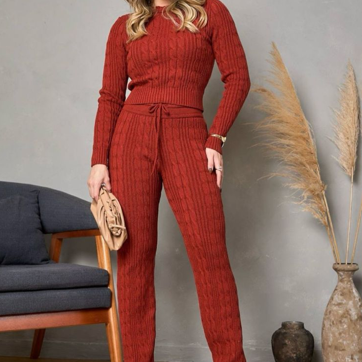 Conjunto Modal Trança Tricô Calça e Blusa Manga longa Inverno moda feminina