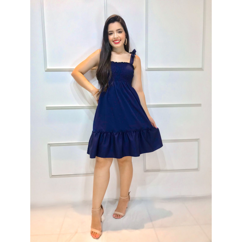Vestido de Alças Largas Rodado com Lastex Varias Cores